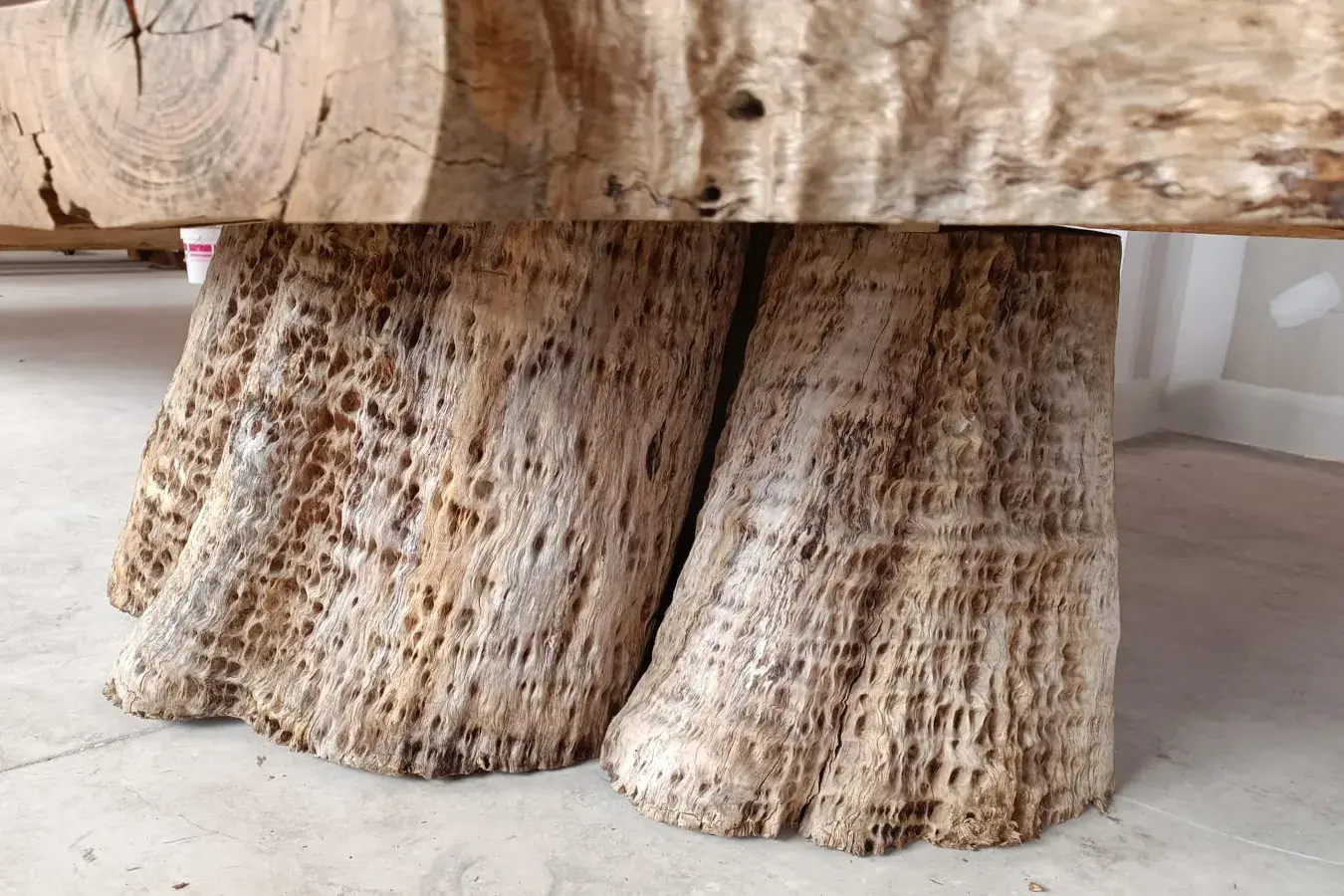 Otra pata de madera de eucalipto con pomelé, creando así el equilibrio perfecto.