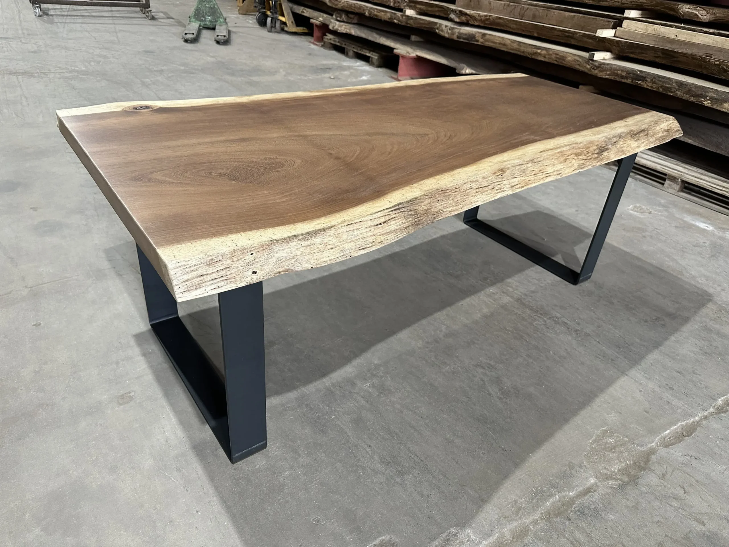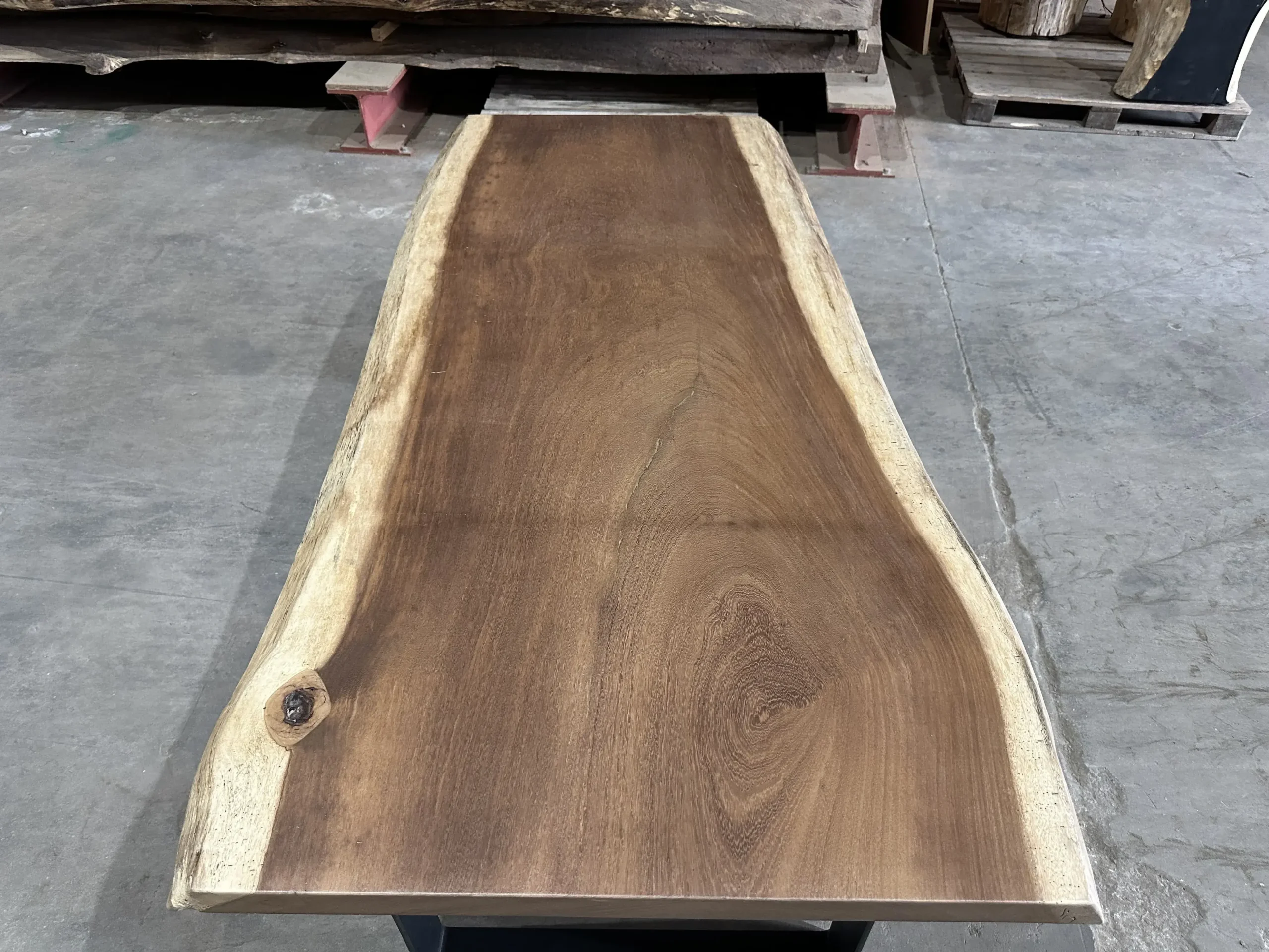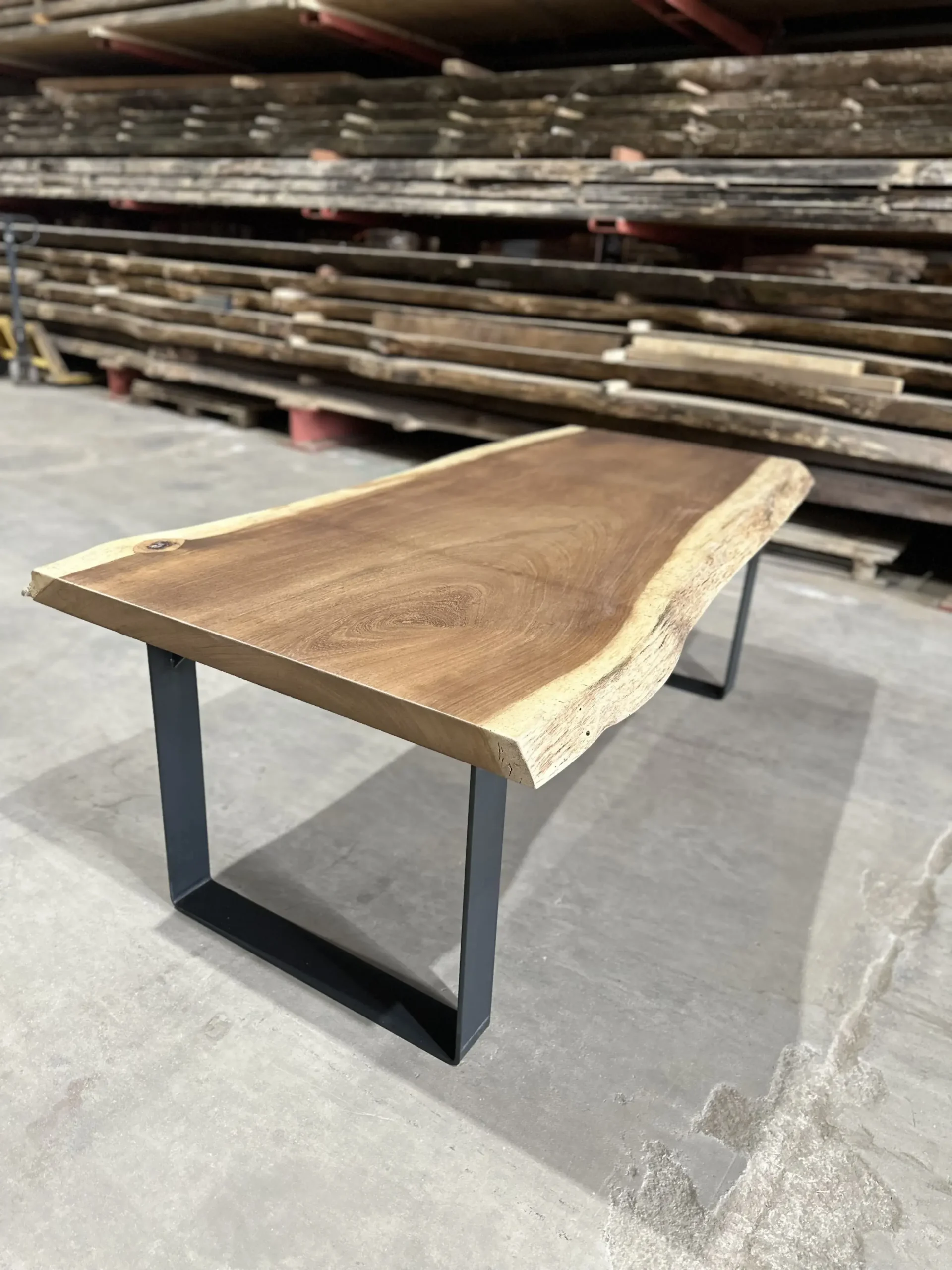 Mesa rectangular fabricada en madera maciza de iroko, de medida 200 cm de largo, 90 cm de ancho y un grosor de 6 cm. Acabado natural. Incluye las patas estándar de hierro de diseño. Ideal para 6-8 comensales.