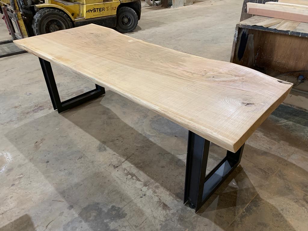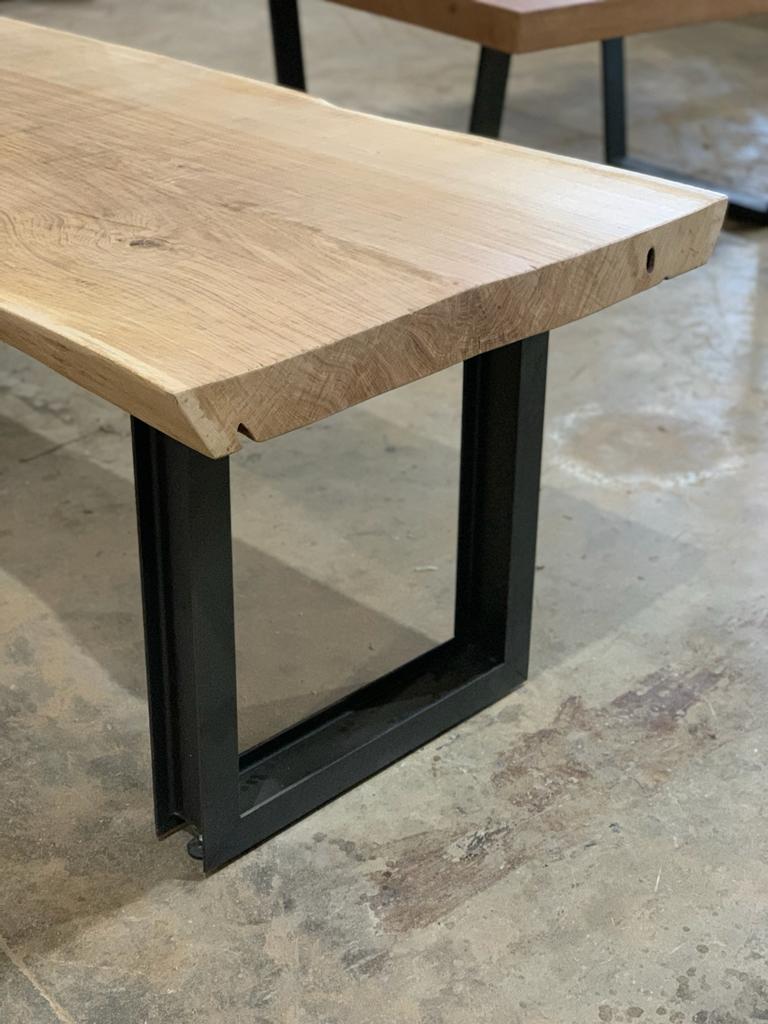Mesa rectangular elaborada en madera maciza de roble francés, con un grosor de 8 cm que aporta solidez y elegancia. Sus medidas de 220 x 90 cm la convierten en una pieza amplia y funcional. El acabado natural resalta las vetas de la madera, mientras que las patas metálicas de diseño aportan un estilo moderno e industrial.
