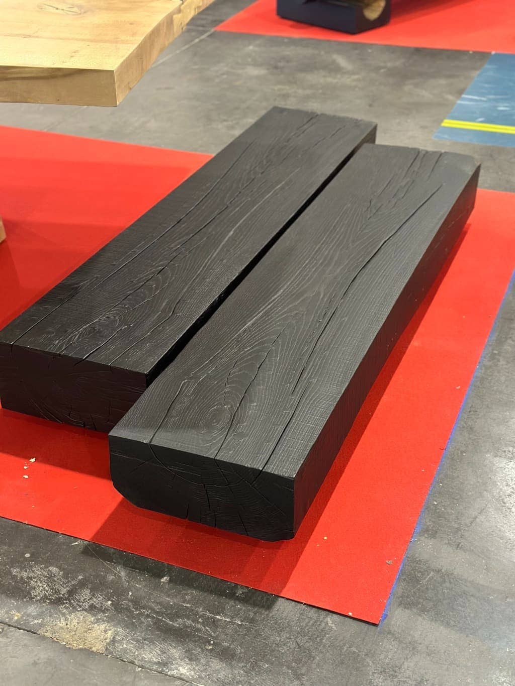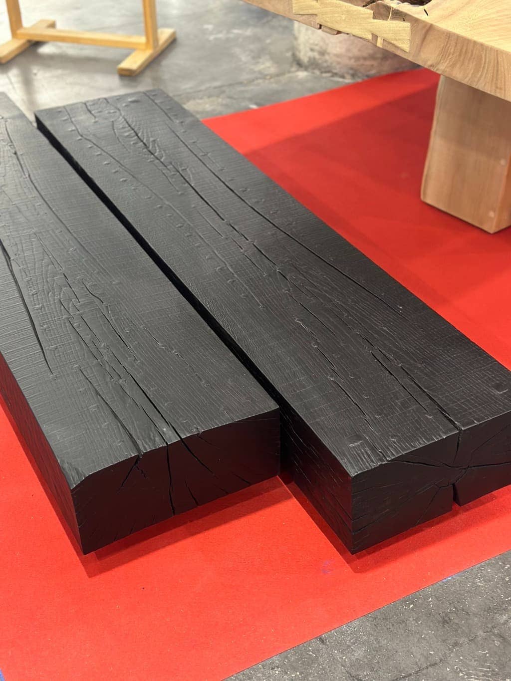 Conjunto compuesto por dos vigas de madera de roble francés tintadas de negro con medidas de 168 x 20 x 20 cm cada una. Su diseño realza la solidez y la belleza orgánica del material, poniendo en valor las vetas y matices únicos de la madera natural. Una pieza imponente y versátil, perfecta para añadir carácter, calidez y distinción tanto en ambientes modernos como en espacios de inspiración tradicional.